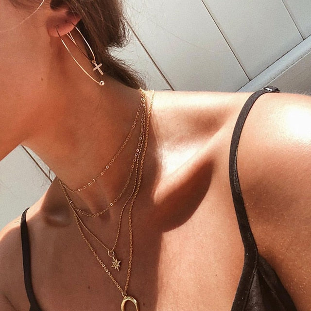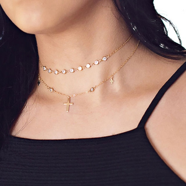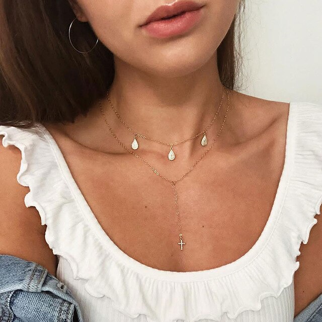 Necklace Women: Long Necklace Female Cross Multilayer Bead Necklace