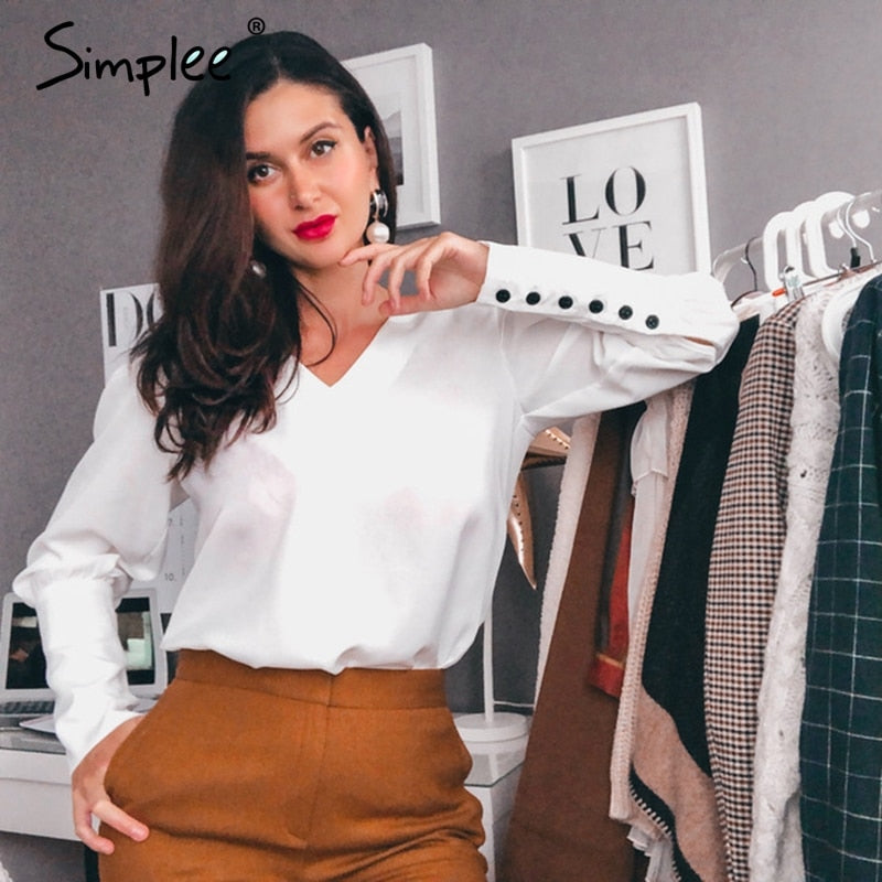 V neck women blouse shirt Puff sleeve - Mazzolah