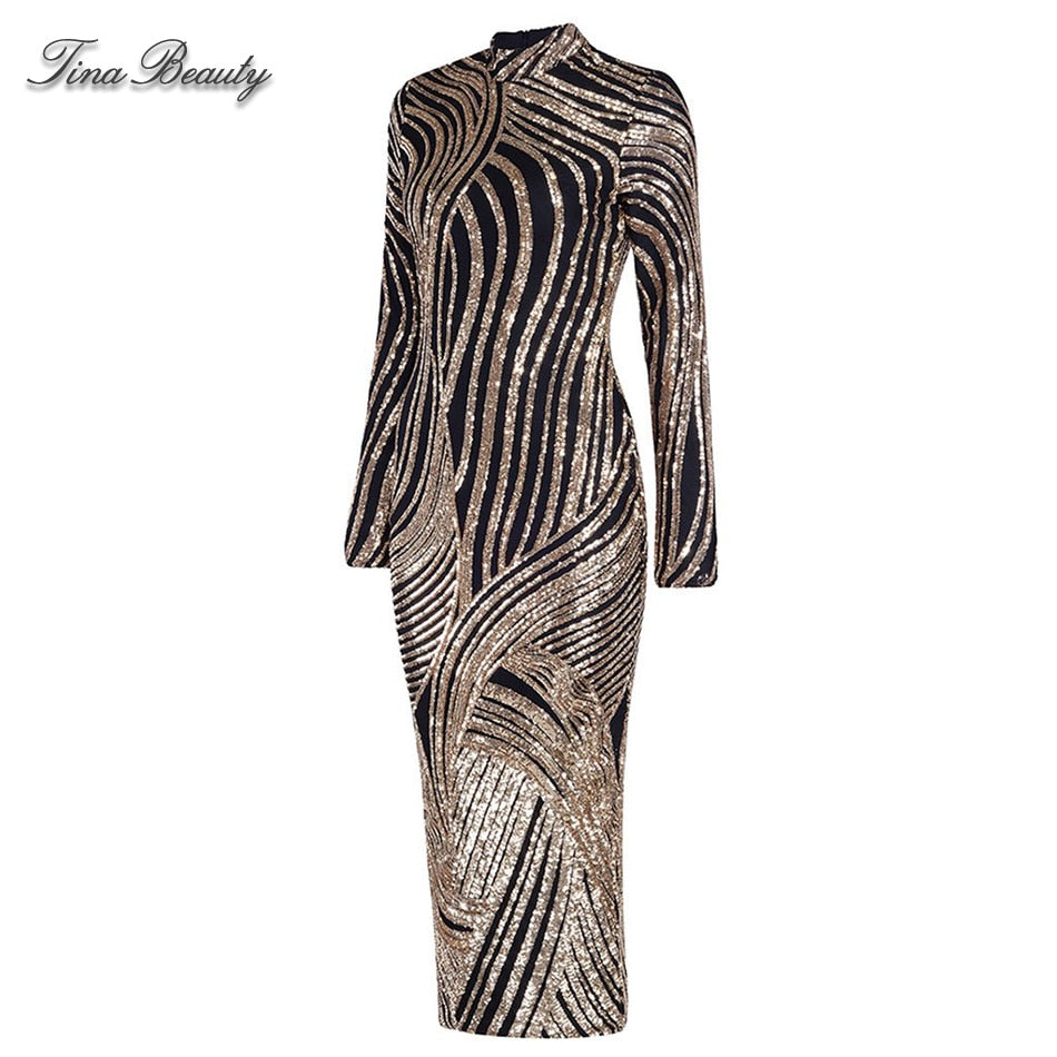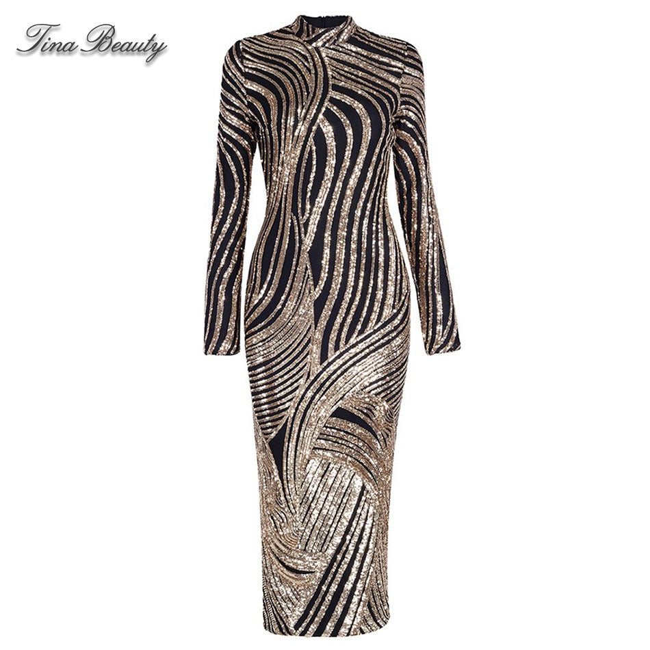 Luxury Sequin Celebrity Golden Dresses - Mazzolah